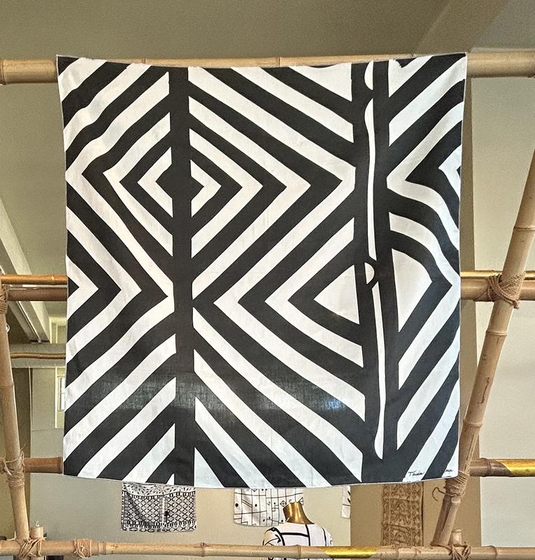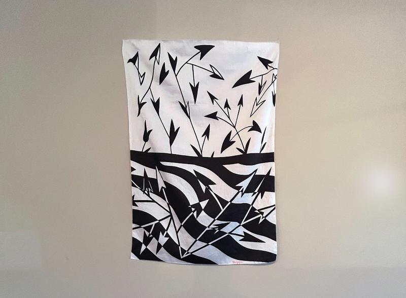 organic cotton and organza tapestry in installation at Queens Museum NYC October 2025 - February 2026, curated by Shane Weeks, Of the Earth exhibition of indigenous artists